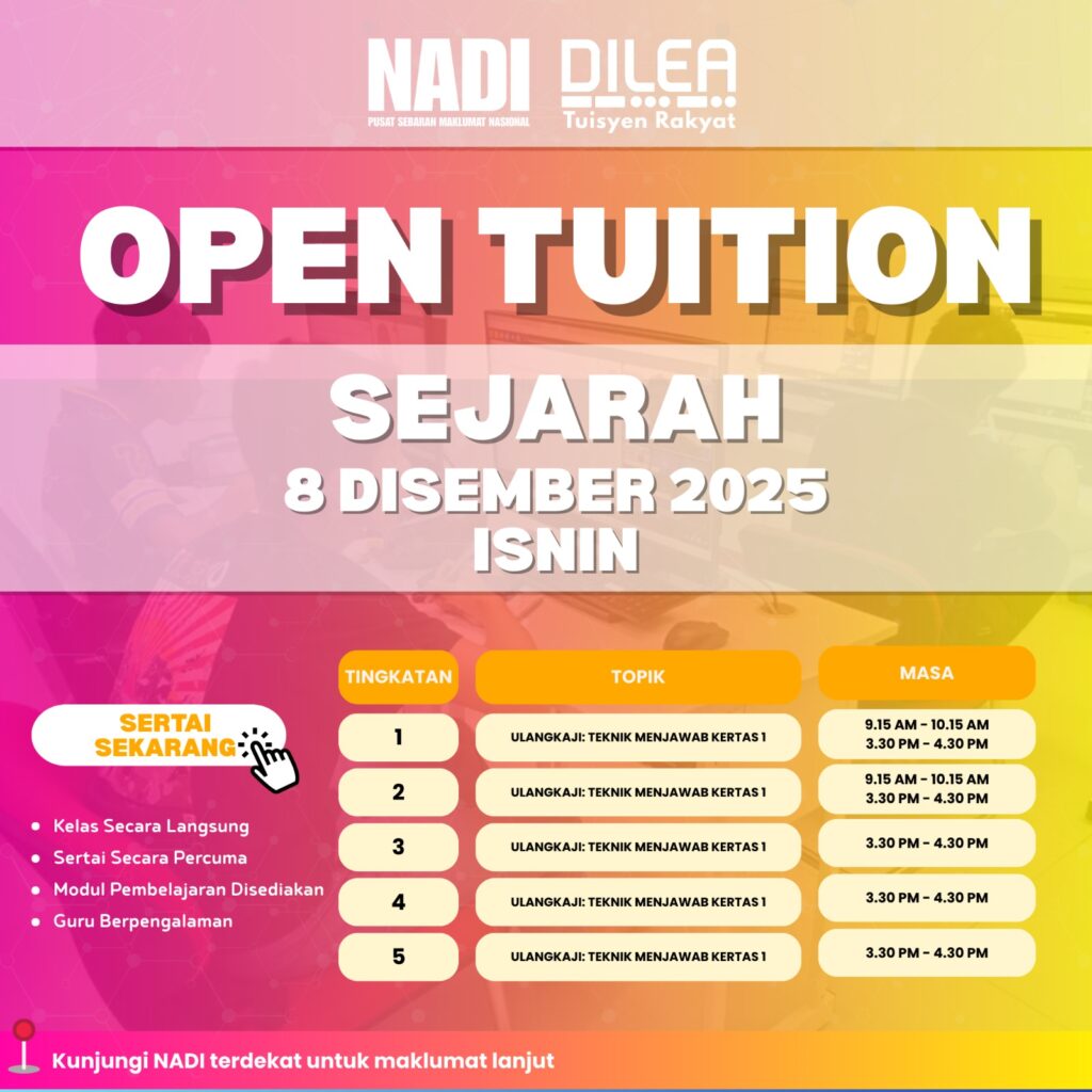 Jom sertai Open Tuition bersama NADI DILEA: Tuisyen Rakyat! 🚀