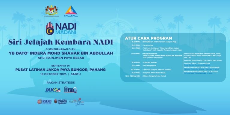 🌟✨ PROGRAM KEMBARA NADI ✨🌟 📅 18 OKTOBER 2025 (SABTU) 🕗 8.30 PAGI – 12.30 TENGAH HARI 📍 DEWAN PUSAT LATIHAN JAKOA, PAYA BUNGOR 💥 MASUK PERCUMA! 🥐 Sarapan Pagi, Minum Pagi & Makan Tengahari Disediakan! 🎯 AKTIVITI MENARIK! 🏃♀ Senamrobik Ceria 🩺 Saringan Kesihatan Percuma 💃🏻 Saringan Mata Percuma 😁 Klinik Pergigian 🕶 Pameran Virtual Reality (VR) 🎨 Pertandingan Mewarna (Pra Sekolah & Tahap 1) 🤖 Bengkel Robotik (Umur 9–12 tahun) 🧠 Kuiz & Permainan Interaktif 🛠 Demonstrasi NADI Mahir 🪪 Pendaftaran Keahlian NADI Percuma! 🎁 Cabutan Bertuah Dengan Hadiah Menarik! 💬 Jom Ramai-ramai Sertai Kami! Satu perjalanan ilmu, kesihatan dan teknologi untuk semua di PROGRAM KEMBARA NADI!
