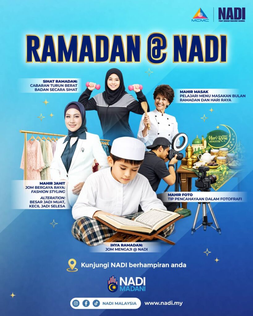 Jom isi Ramadan ini dengan aktiviti menarik dan bermanfaat di NADI berdekatan anda! Layari nadi.my/lokasi untuk ketahui lokasi NADI berdekatan anda sekarang.